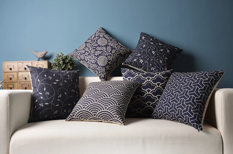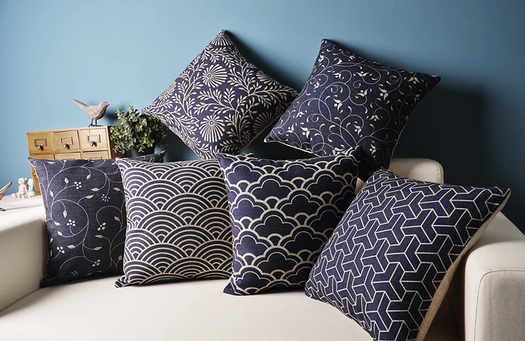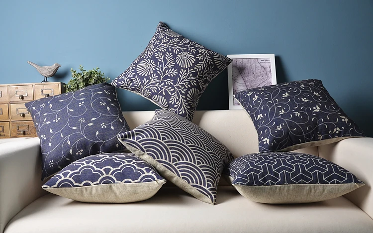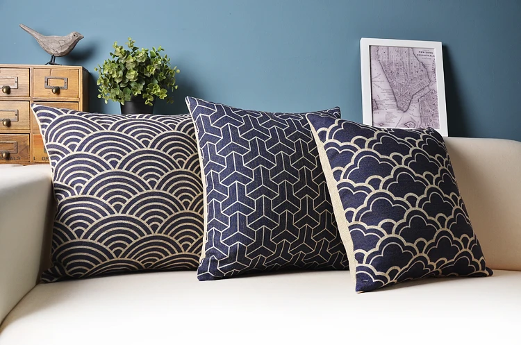 Home Decorative Blue Geometric Stripe Wave Pillow Case Geometry Floral Bohemia Pillow Cover Decor Office Sofa Cushion